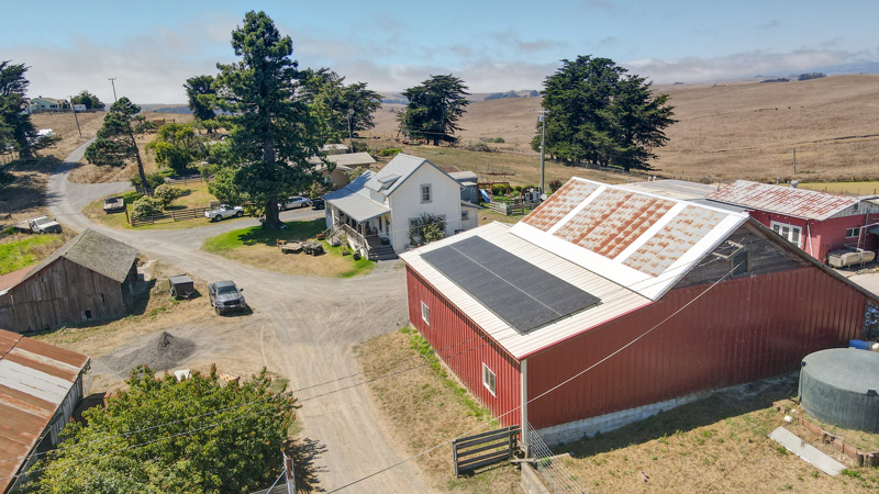 Solar panels on the barn roof at Marshall Home Ranch now power water pumps and freezers, keeping the operation running even when the grid goes down.
